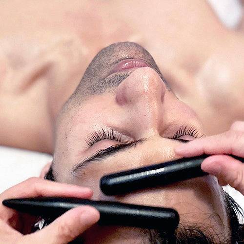 Our signature Gua Sha Natural Face Lift is a much-sought out treatment that provides immediate results. Using a combination of various natural gua sha tools, our experienced therapists skillfully stimulate acupoints to activate chi. Utilizing lifting and contouring action across the cheeks, forehead, and jawline, the Gua Sha technique releases tension, irons out wrinkles, improves circulation to provides a more radiant and youthful glow